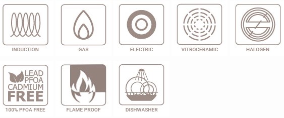 Каструлі нашої універсальної серії Capella придатні для використання на всіх типах варильних панелей: індукційних, газових, електричних, керамічних, галогенних. Сміливо купуйте наш унікальний кухонний посуд, який органічно доповнить інтер'єр будь-якої кухні, незалежно від типу варильної поверхні.