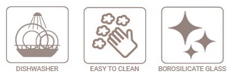 - Матеріал: нержавіюча сталь, боросилікатне скло, силікон