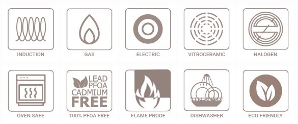 Вироби з колекції Ascella оснащені індукційним дном, що робить їх ідеальними не тільки для індукційних, а й для традиційних газових плит, на яких вони функціонують бездоганно.