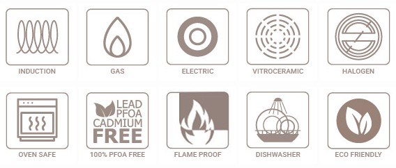 Вироби з колекції Ascella оснащені індукційним дном, що робить їх ідеальними не тільки для індукційних, а й для традиційних газових плит, на яких вони функціонують бездоганно.