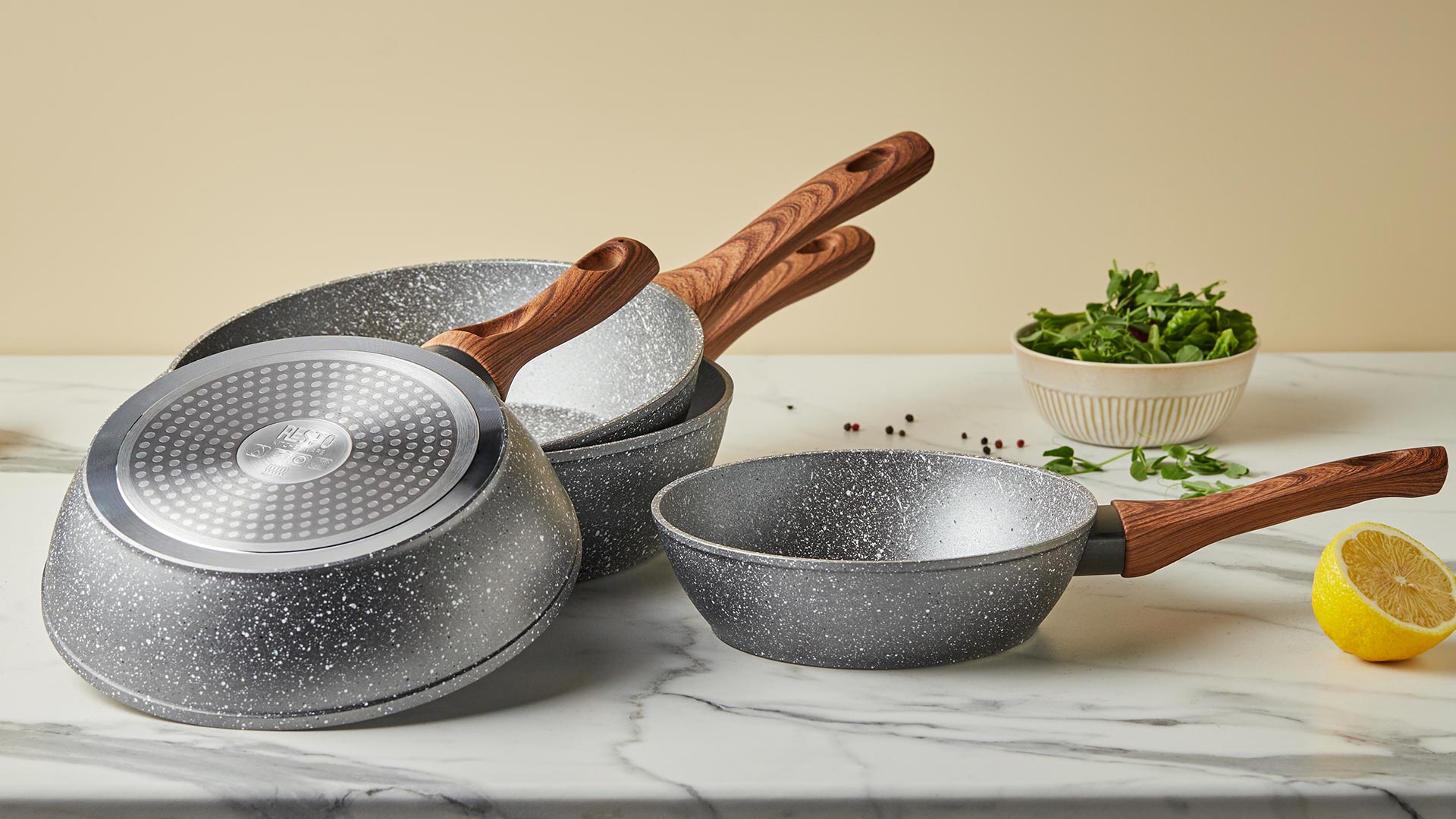 Наслідуючи найвищі стандарти кулінарної майстерності, ми прагнемо навчитися готувати так само чудово, як це роблять гуру кулінарії на численних кулінарних телешоу. І, звичайно, хочеться мати можливість готувати їжу зовсім не так, як у ресторанах, легко і по-домашньому. Стильна та функціональна серія Aquila надасть вам у цьому неоціненну допомогу. Наша унікальна глибока сковорода, що має внутрішнє антипригарне гранітне покриття, проста та невибаглива у використанні. Вона довговічна і дуже практична, тому вам не доведеться витрачати дорогоцінний час на нескінченне миття посуду.